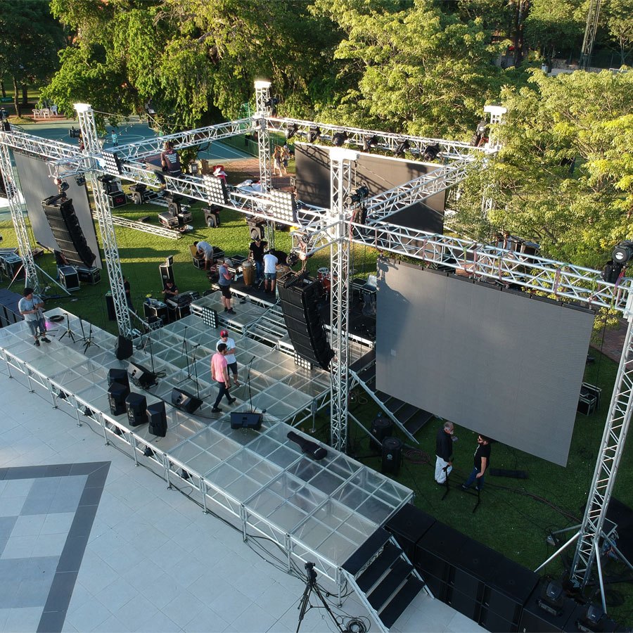La mejor solución para tus eventos, TRUSS de aluminio y escenarios de ACRÍLICO, los cuales son adaptables a cualquier superficie y tamaño.